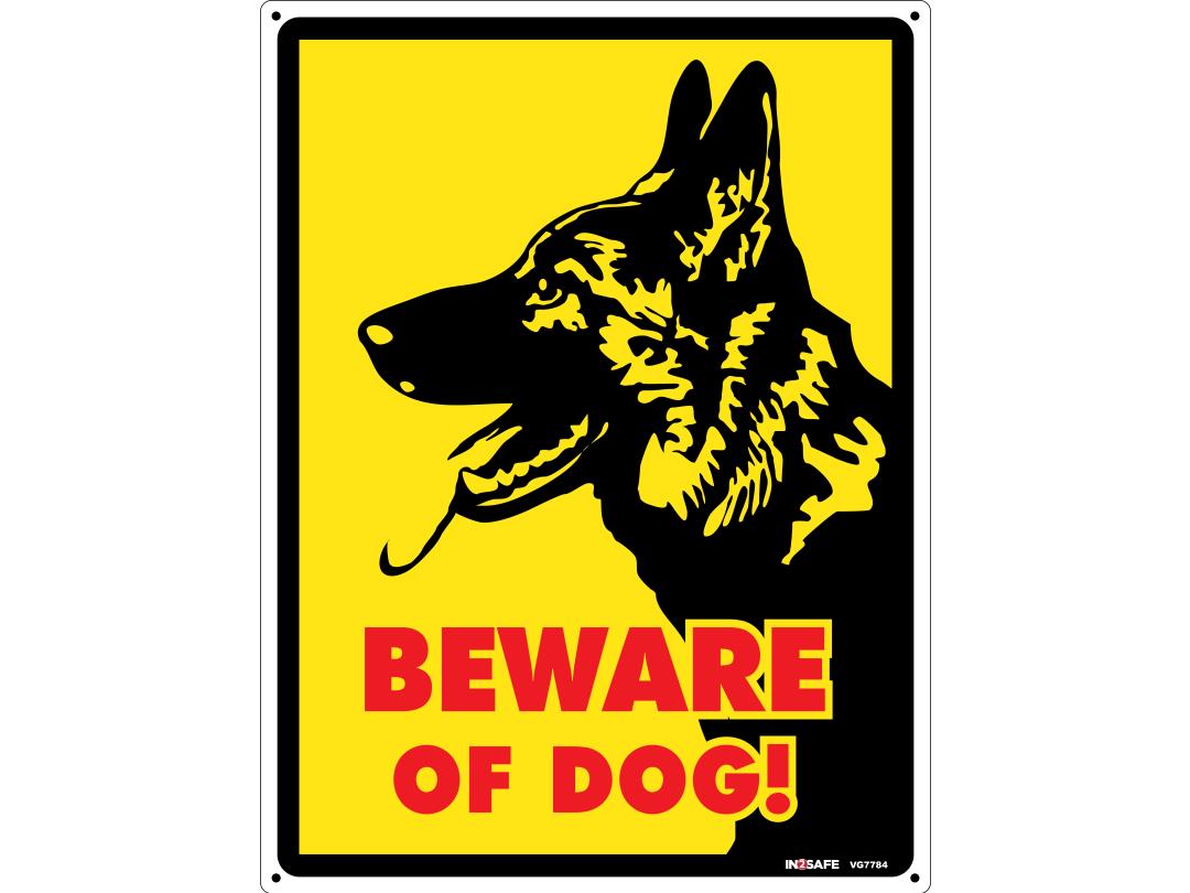 The Beware of the Dog Sign (225 x 300) featuring a German Shepherd graphic is designed to warn visitors of potential canine hazards. Perfect for homes, businesses, or properties with active dogs, it ensures safety while adding a professional touch to your property.
