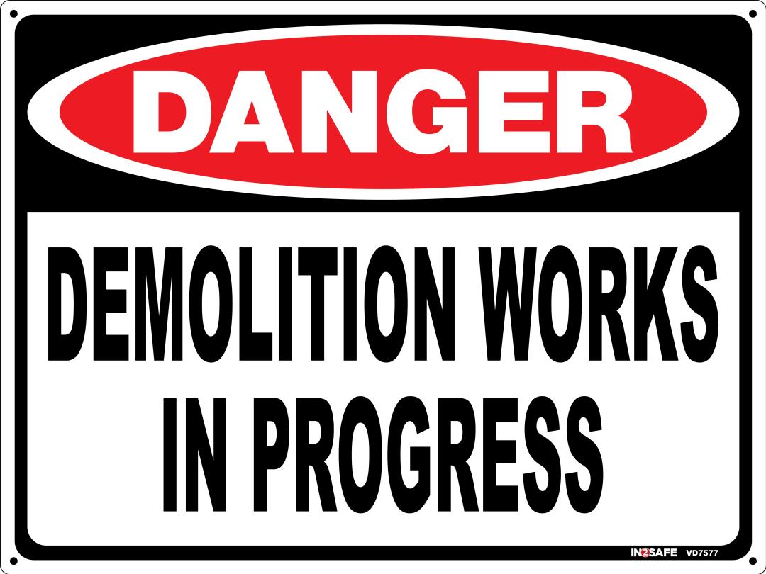 • Bold "Danger Demolition Works in Progress" message for high visibility