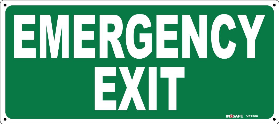 • Bold "Emergency Exit" text for high visibility