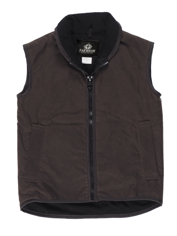 Far South Monkey Island Children's Oilskin Vest offers warmth and durability with a premium oilskin outer and fleece lining.