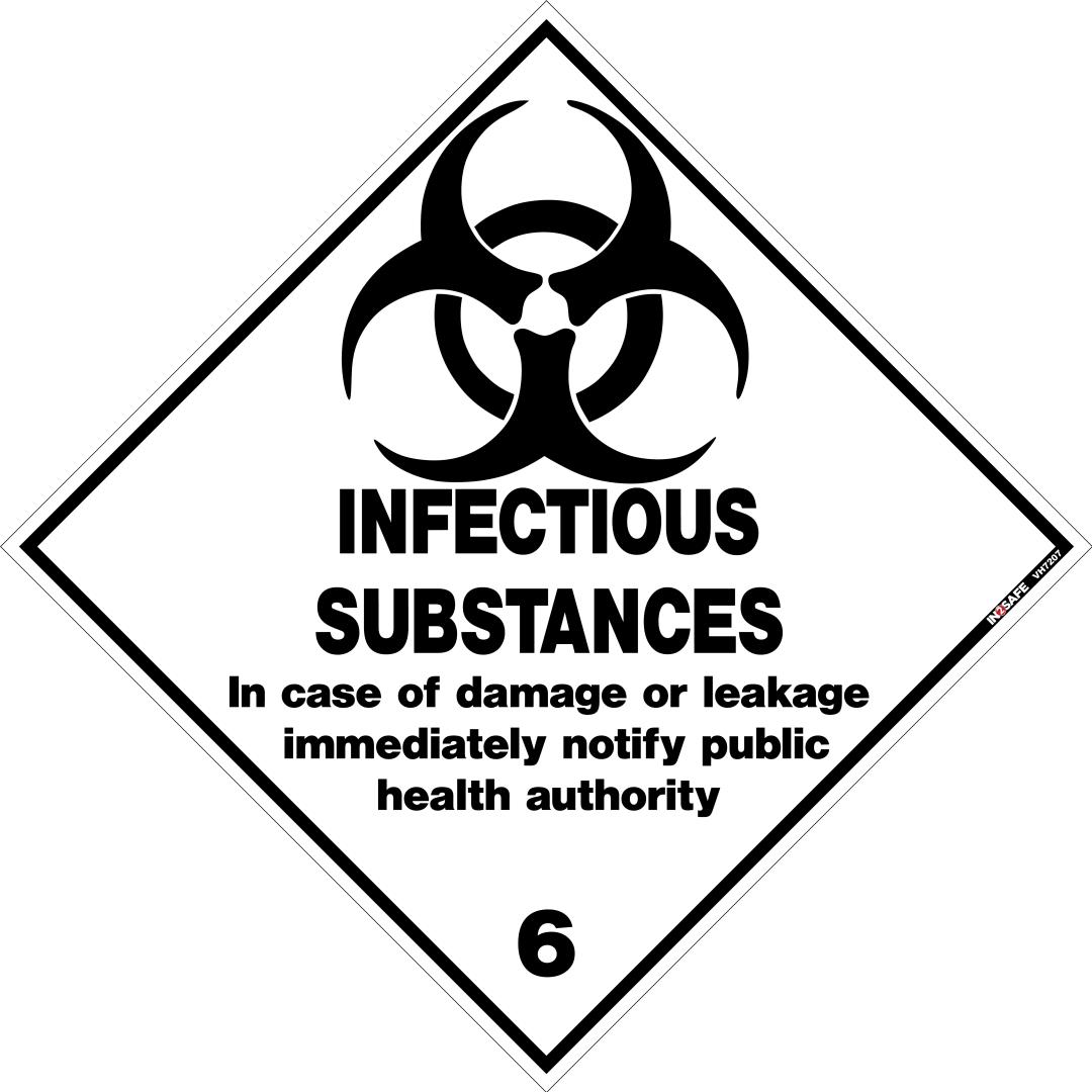 Infectious Substance 6 Sign Label 400 x 400 SAV (Self Adhesive Vinyl Sticker) for effective labeling of hazardous biological materials.