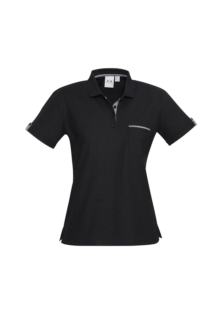 Ladies Edge Polo is a stylish, versatile polo with distinctive check trims for a modern edge.