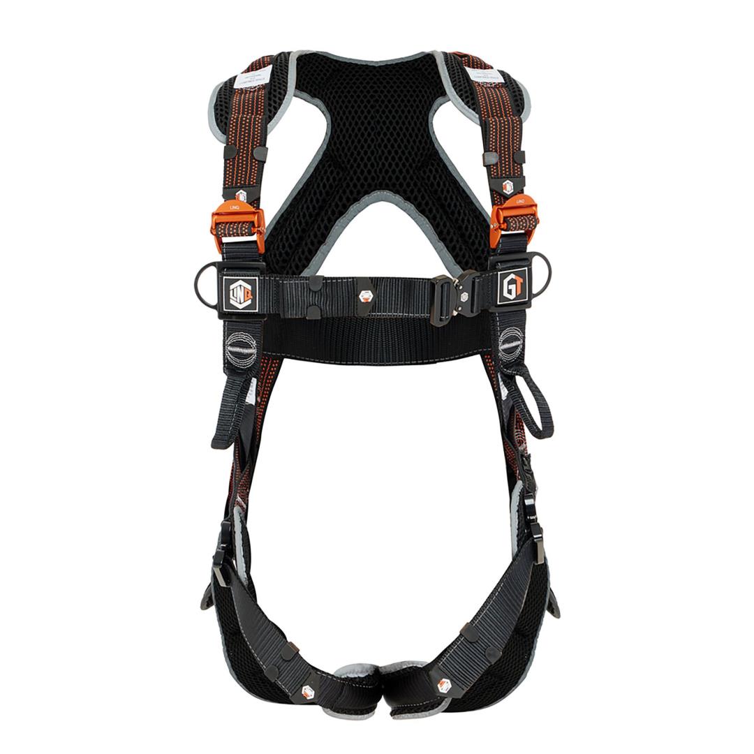 Sub Pelvic Strap integration along the line of Belay Loops, places the worker away from hardware in the event of a fall, significantly reducing the risk of injury from hardware hitting the worker.