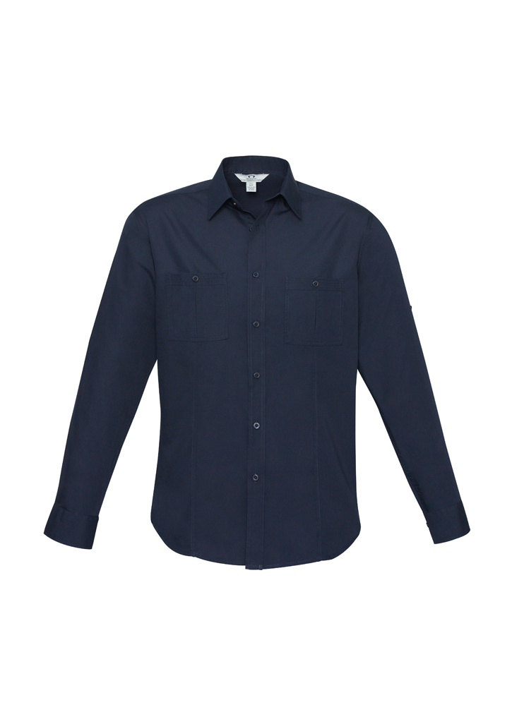The Mens Bondi Long Sleeve Shirt combines style and functionality with twin chest pockets, roll-up sleeves, and a comfortable fit, perfect for versatile wear.