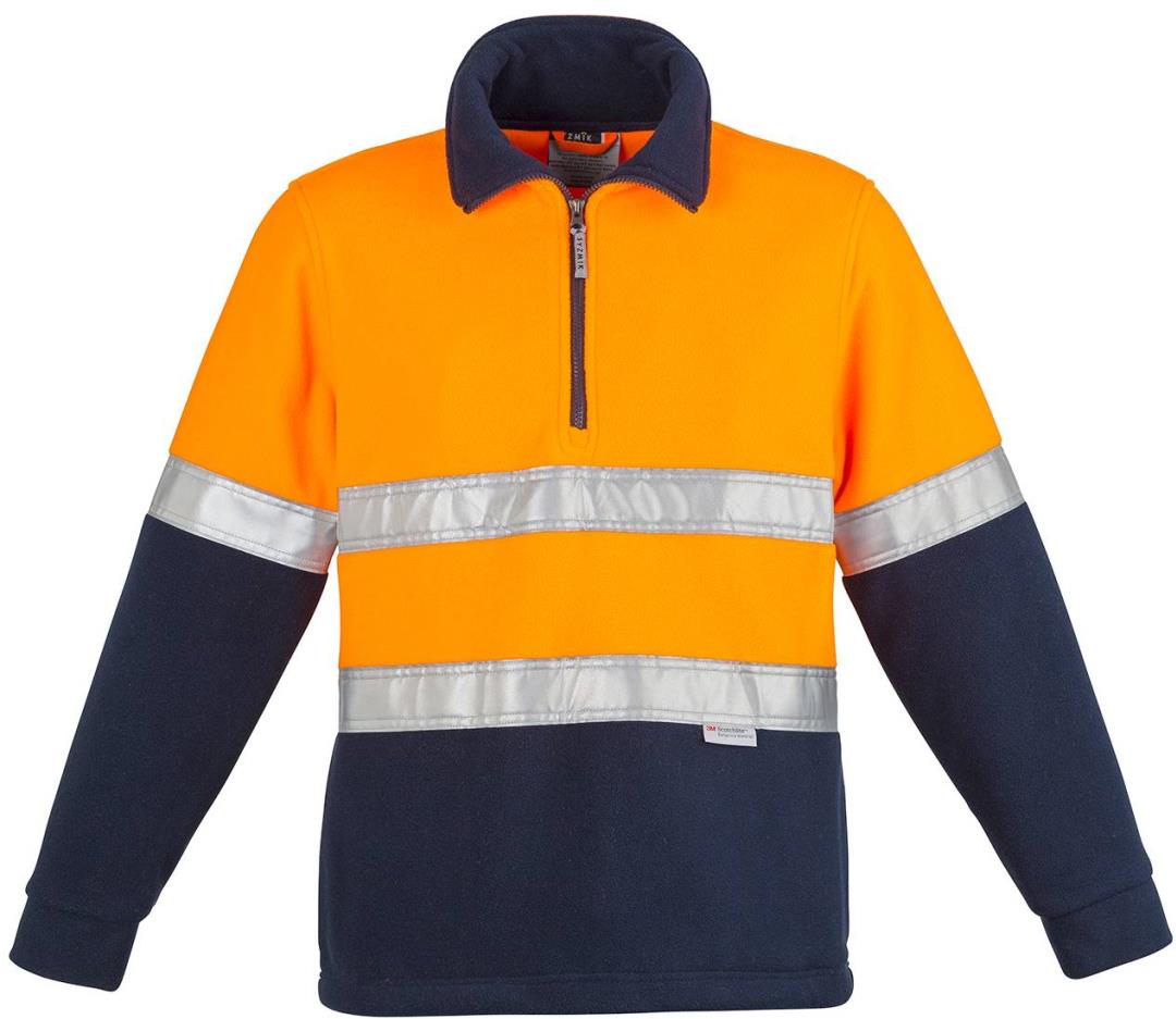 A high-visibility fleece jumper designed for both warmth and enhanced safety with hoop-taped reflective detailing.