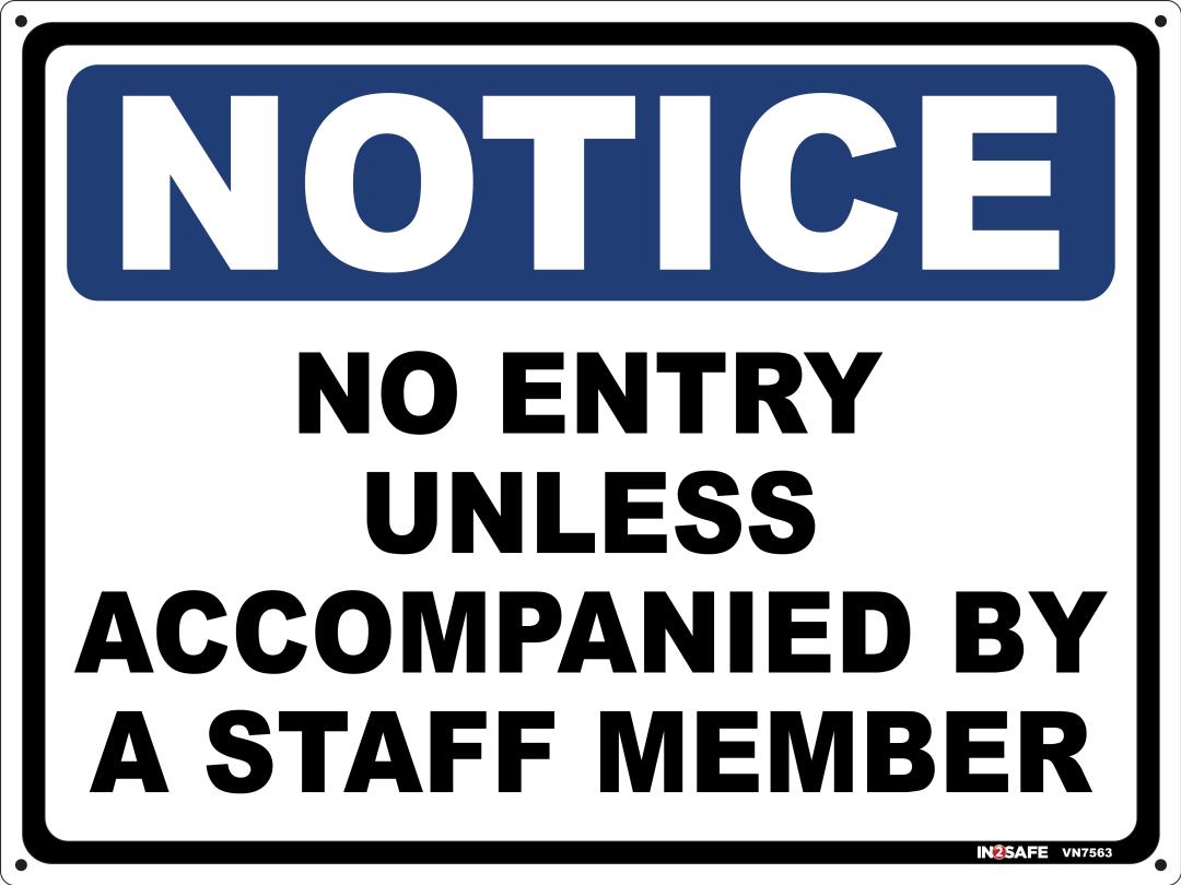 Ensure safety and control access with the Notice No Entry Unless Accompanied By A Staff Member Sign. This durable sign clearly communicates restricted entry, allowing access only with staff supervision.