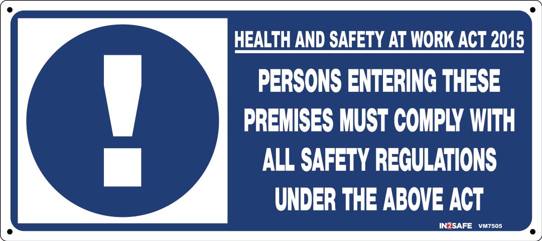 • Message: “Persons entering these premises are advised that under the Health and Safety at Work Act 2015...”