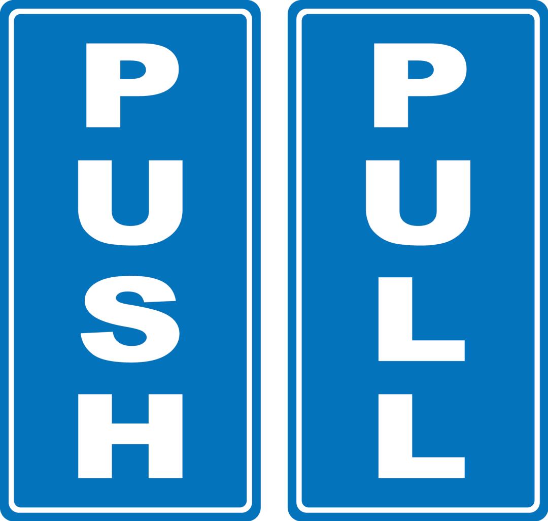 Push Pull Sign Label Set 75 x 150 SAV (Self Adhesive Vinyl Sticker) for clear door operation instructions.