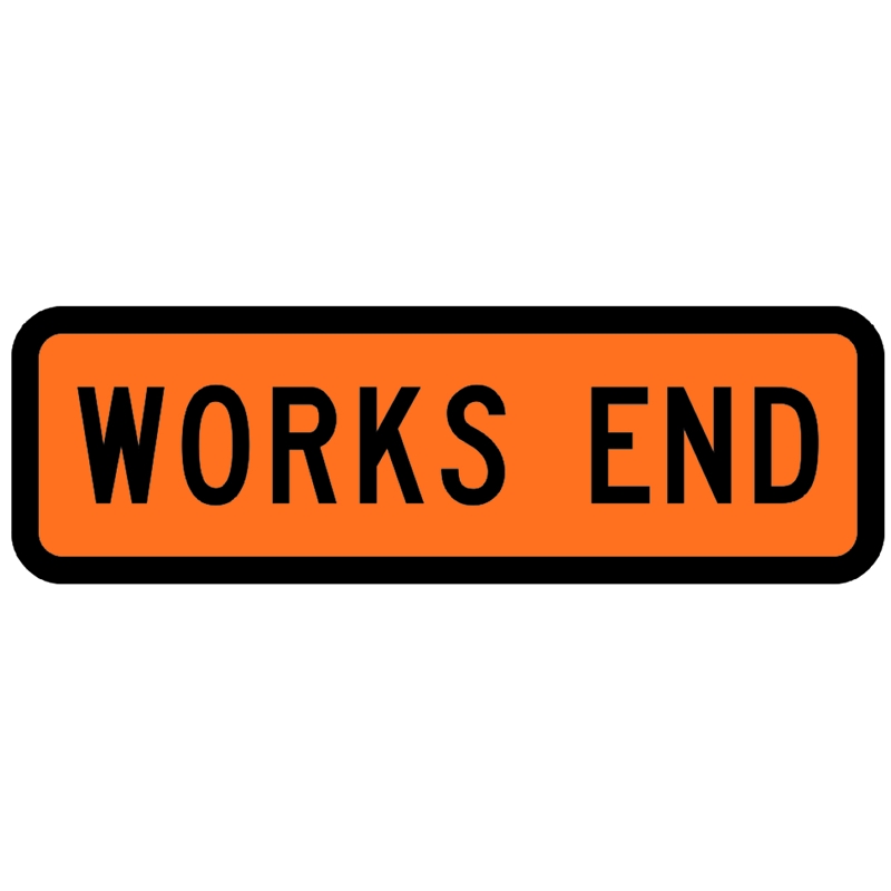 • Use: Indicates the end of a works zone, ensuring road user safety.