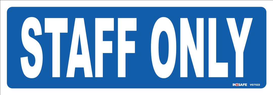 The Staff Only Sign (200 x 70 PVC) is designed to restrict access to authorized personnel, ensuring that only staff members can enter specific areas. Ideal for offices, warehouses, or restricted zones in any workplace.
