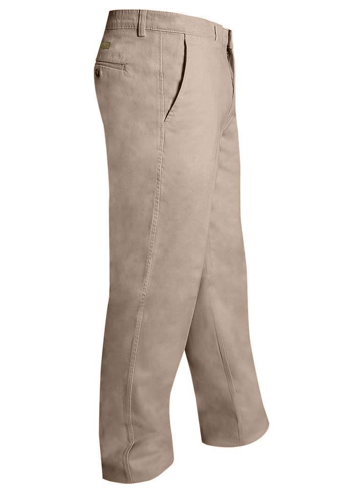 Flat front style, 1 coin pocket, 2 side pockets, 2 back welted pockets, 6 belt loops, heavy duty pocketing, all seams topstitched for strength, fabric brushed on inside and sueded on outside. 470gsm (14.5oz) 100% cotton fabric. Pre-shrunk. Inseam 85cm. • Ideal for outdoor work, farming, and general wear