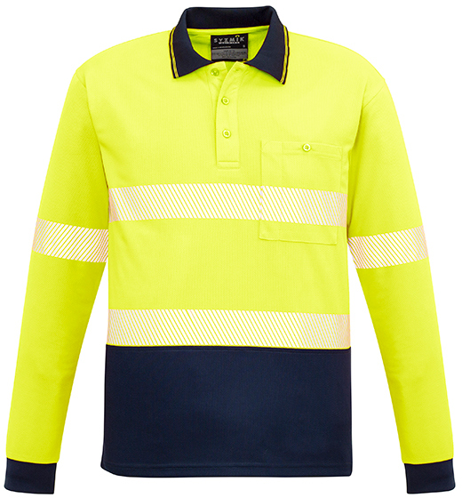 Stay visible and safe with this unisex long sleeve polo, featuring segmented hoop-taped reflective stripes for enhanced visibility. Ideal for working in low-light conditions while offering comfort and practicality.